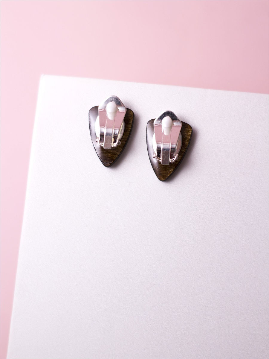 Материал: береза. Особенный объем модели придает покрытие ювелирной смолой. Гипоаллергенная посеребренная фурнитура на основе латуни, ручной работы, со специальными мягкими вставками для максимального удобства и мягкости ношения. Размеры: ширина 17 мм, высота 24 мм.